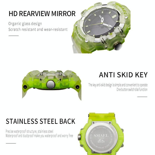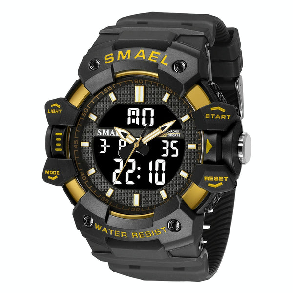 SMAEL 8080 Outdoor Sports Waterproof Multifunctional Glowing Double Dial Watch(Black Gold)