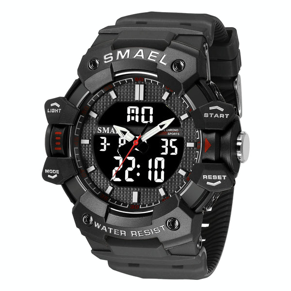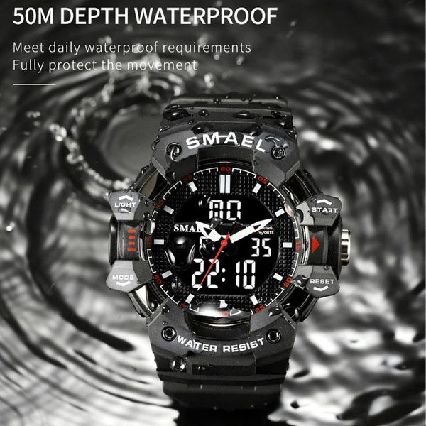 SMAEL 8080 Outdoor Sports Waterproof Multifunctional Glowing Double Dial Watch(Black White)