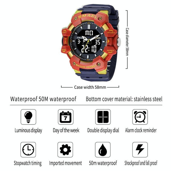 SMAEL 8080 Outdoor Sports Waterproof Multifunctional Glowing Double Dial Watch(Red)