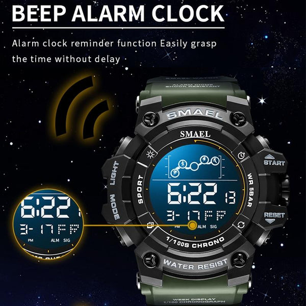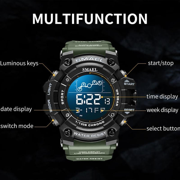 SMAEL 8082 Outdoor Waterproof Sports Multifunctional Luminous Timing Electronic Watch(Army Green)