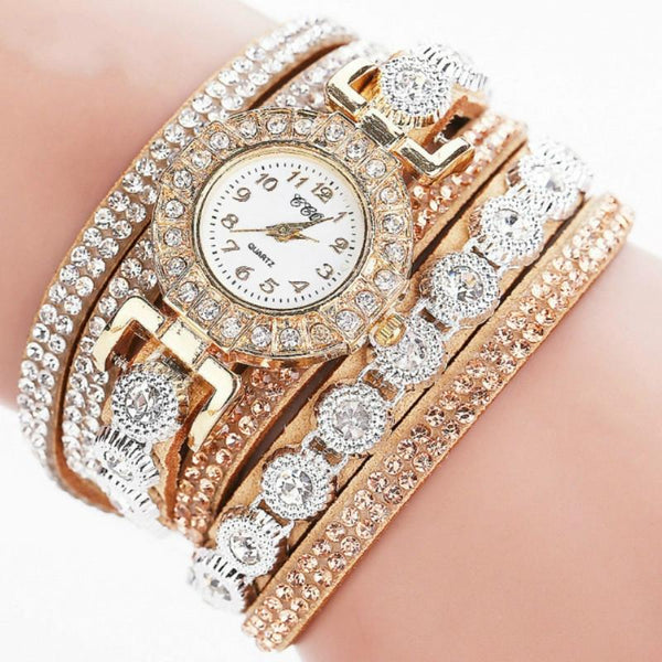 Small Dial Diamond-plated Winding Bracelet Quartz Watch(Milky white)