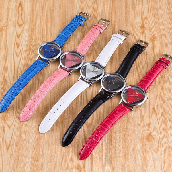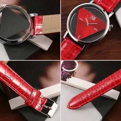 Snake Belt Women Watch Double-Sided Hollow Perspective Triangle Quartz Watch(Black)