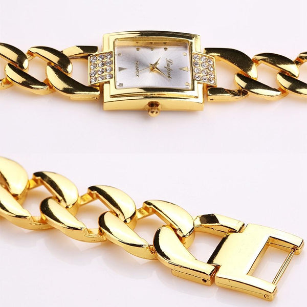 Square Dial Diamond Plated Hollow Alloy Bracelet Strap Quartz Watch for Women(Silver band white surface)