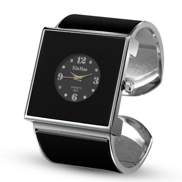 Square Large Dial Bracelet Quartz Watch for Women(Black)