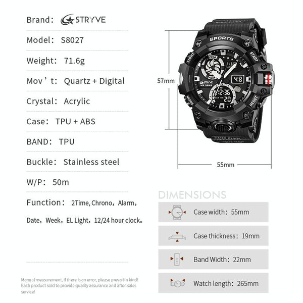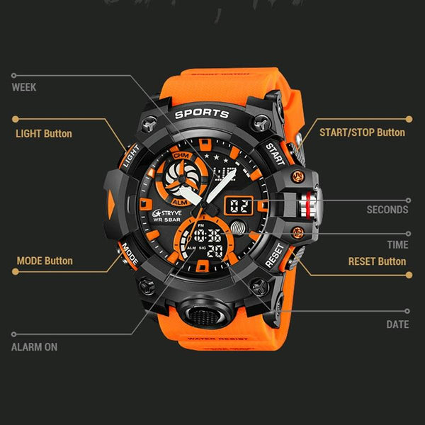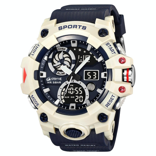 STRYVE S8027 Sports Multifunctional Luminous Dual Display Chronograph Student Watch(Deep Blue)