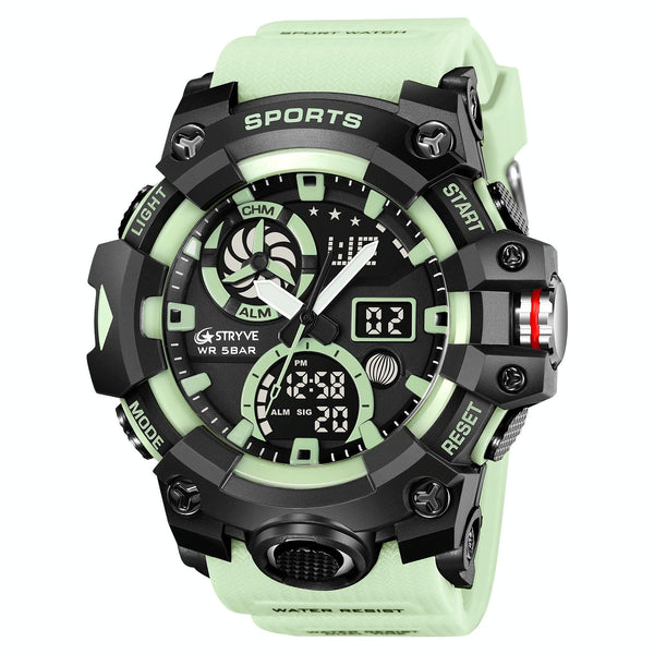STRYVE S8027 Sports Multifunctional Luminous Dual Display Chronograph Student Watch(Light Green)