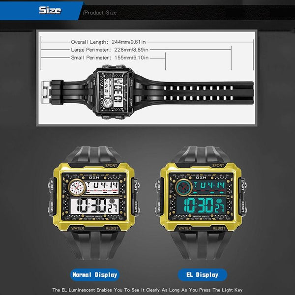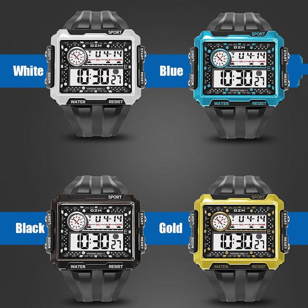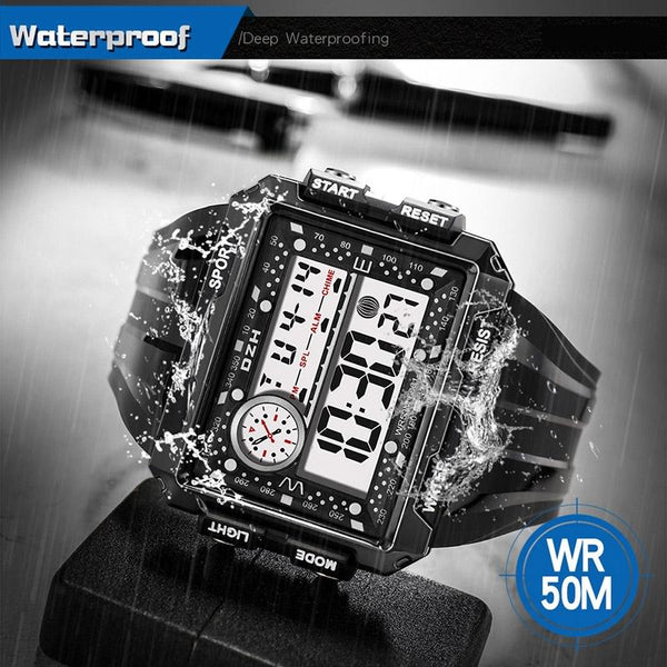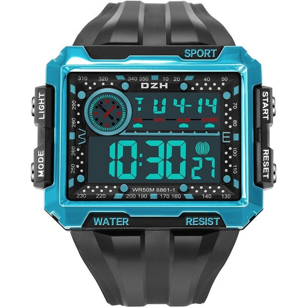 SYNOKE 6861 Outdoor Luminous Waterproof Multi-Function Square Large Screen Display Sports Electronic Watch(Black Blue)
