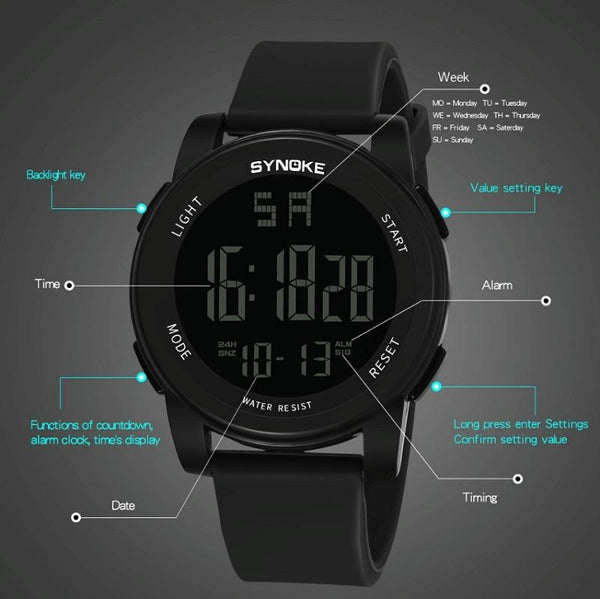 SYNOKE 9002 Men Outdoor Waterproof Sports Watch Multifunctional Luminous Digital Watch(Army Green)