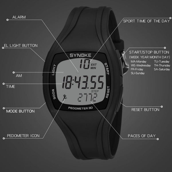 SYNOKE 9105 Multifunctional Sports Time Record Waterproof Pedometer Electronic Watch(Gray)