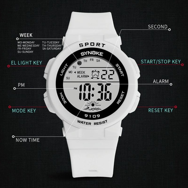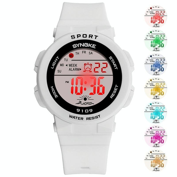 SYNOKE 9109 Student Multifunctional Waterproof Colorful Luminous Electronic Watch(White)