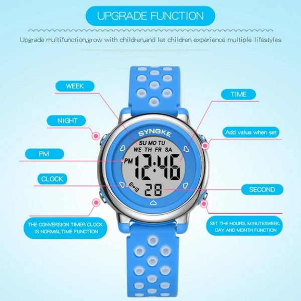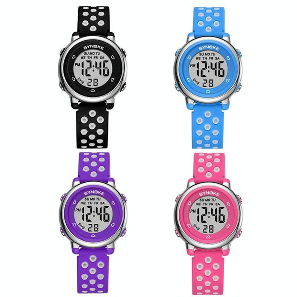 SYNOKE 9112 Waterproof Alarm Luminous Large Screen Colorful Children Digital Watch(Tow-color Black)