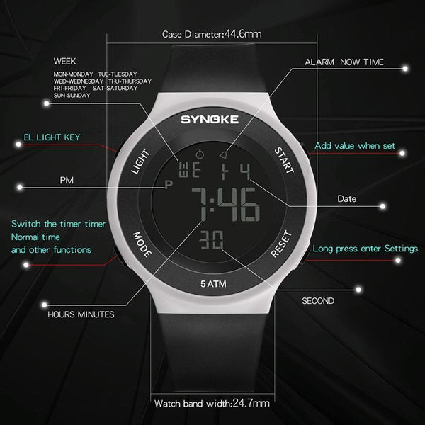 SYNOKE 9199 Student Waterproof Luminous LED Electronic Watch(Black)