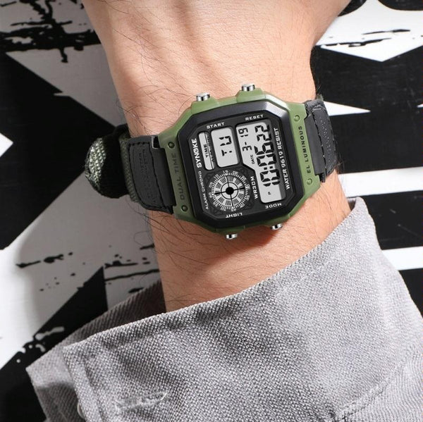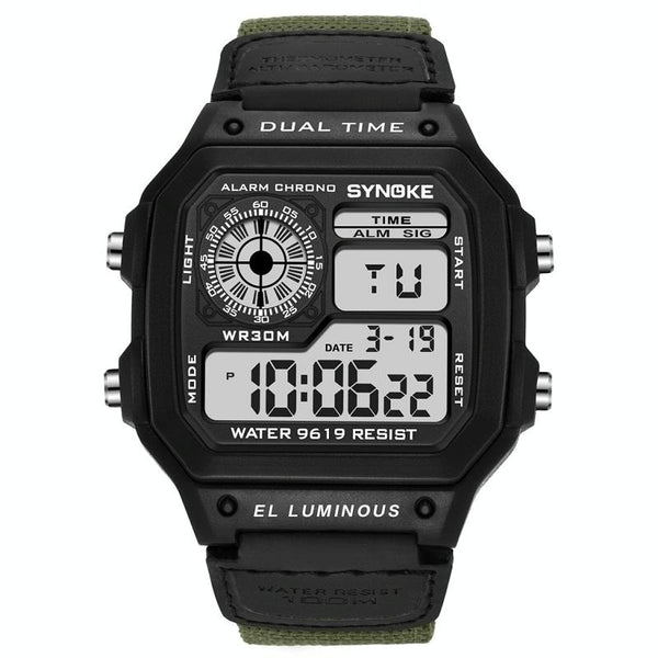 SYNOKE 9619B Nylon Canvas Strap Luminous Waterproof Digital Watch(Black Head Green Belt)