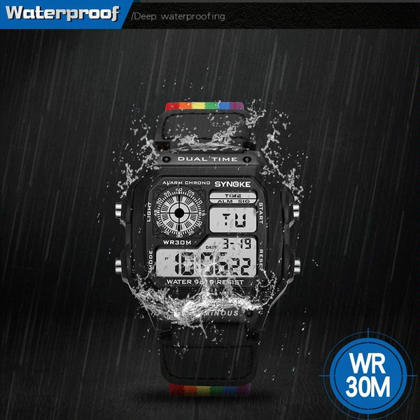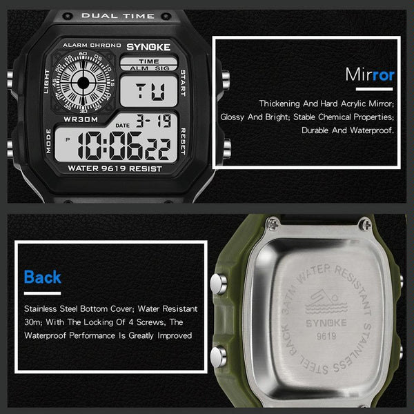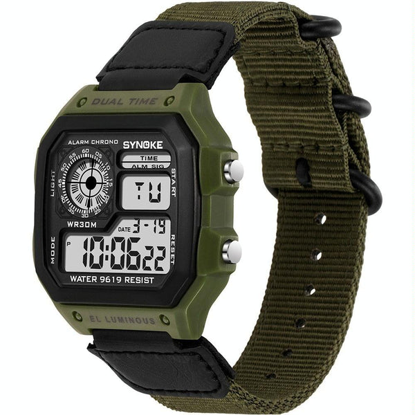 SYNOKE 9619C Nylon Canvas Strap Three-Ring Buckle Vintage Electronic Luminous Watch(Green)