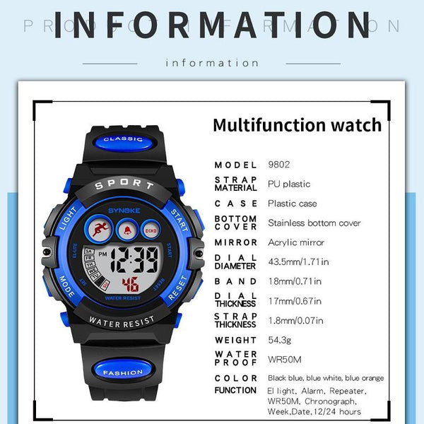 SYNOKE 9802 Children Sports Waterproof Digital Watch(Black Blue)