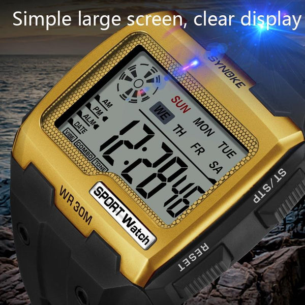 SYNOKE Square Sarge Screen Display Luminous Multifunctional Outdoor Men Sports Watch Digital Watch(Upgraded Version Black)