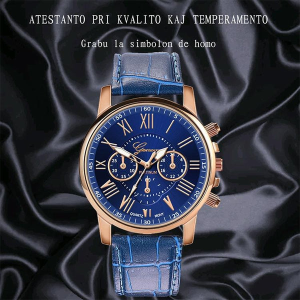 Three-eye Six-needle Imitation Belt Quartz Watch for Women / Men(Blue)