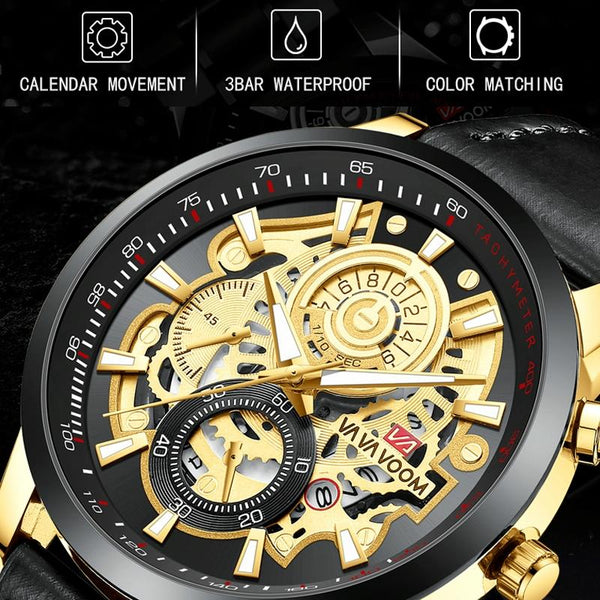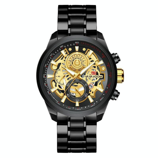 VAVA VOOM 2311G-JH2 Black Shell Steel Belt Men Waterproof Sports Luminous Calendar Casual Quartz Hollow Watch