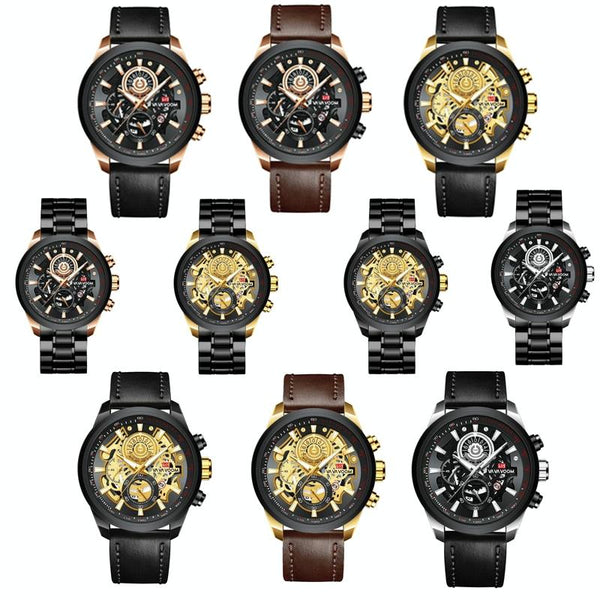 VAVA VOOM 2311P-JH2 Black Shell Belt Men Waterproof Sports Luminous Calendar Casual Quartz Hollow Watch