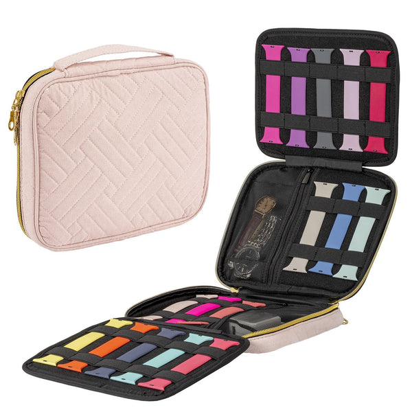 6. Can hold up to 16 straps, inner transparent pocket mesh pocket can store watch or watch accessories