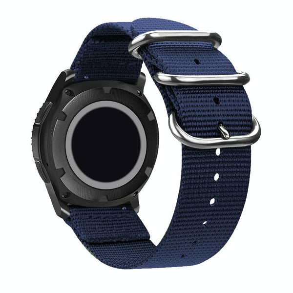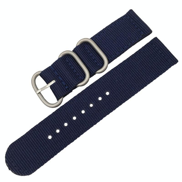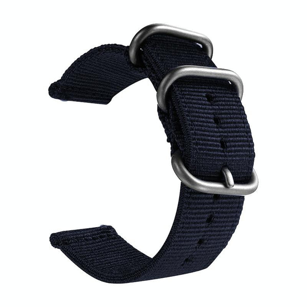 Washable Nylon Canvas Watchband, Band Width:18mm(Dark Blue with Silver Ring Buckle)