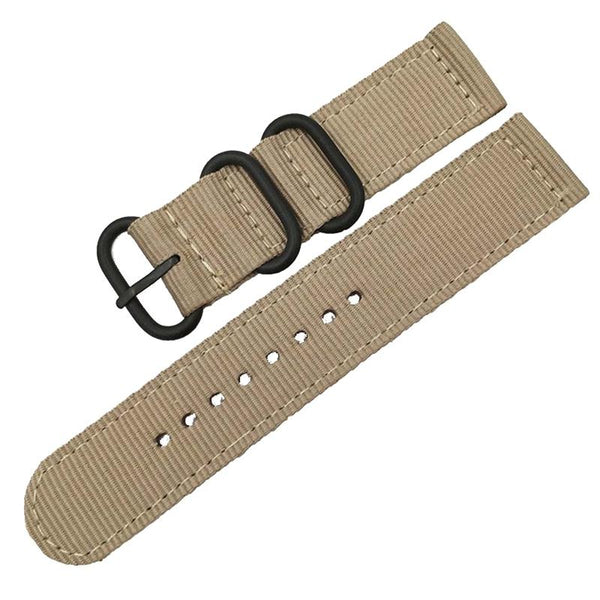 Washable Nylon Canvas Watchband, Band Width:20mm(Khaki with Black Ring Buckle)