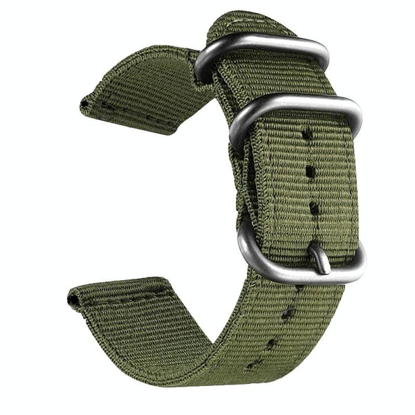 Washable Nylon Canvas Watchband, Band Width:24mm(Army Green with Silver Ring Buckle)