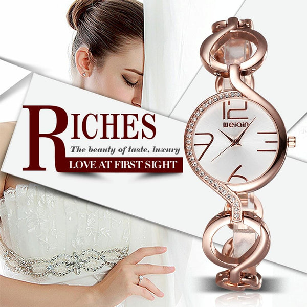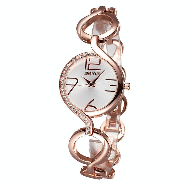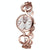 WeiQin Women Fashion Hollow Chain Bracelet Crystal Inlaid Dial Quartz Wrist Dress Watch(Rose Gold + White)