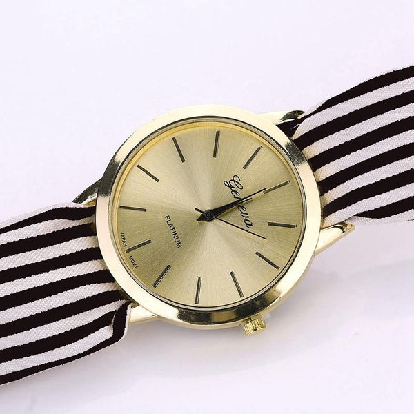 Women Fashion Striped Fabric Strap Quartz Watch(Black)