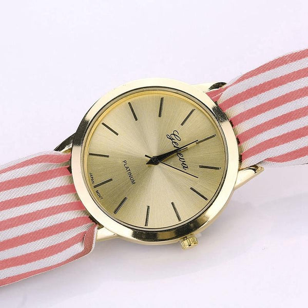 Women Fashion Striped Fabric Strap Quartz Watch(Pink)