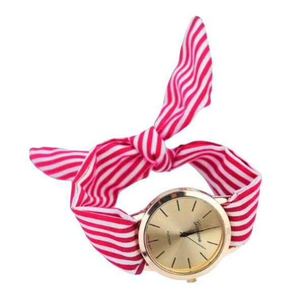 Women Fashion Striped Fabric Strap Quartz Watch(Rose red)