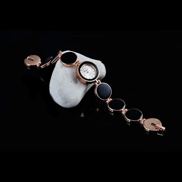 Women Round Dial Bracelet Quartz Wristwatch(Black)
