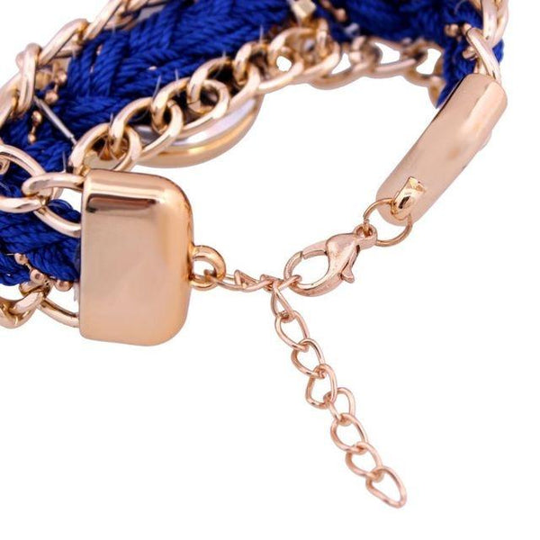 Women Round Dial Diamond Braided Hand Strap Quartz Watch with Key Pendant(red)