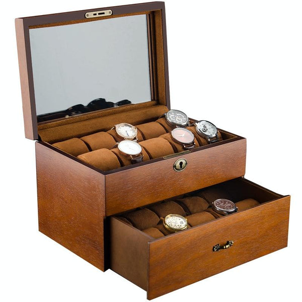 Wooden Double-Layer Watch Storage Box With Lock Jewelry Collection Display Box, Specification: 20 Epitope With Glass Sunroof