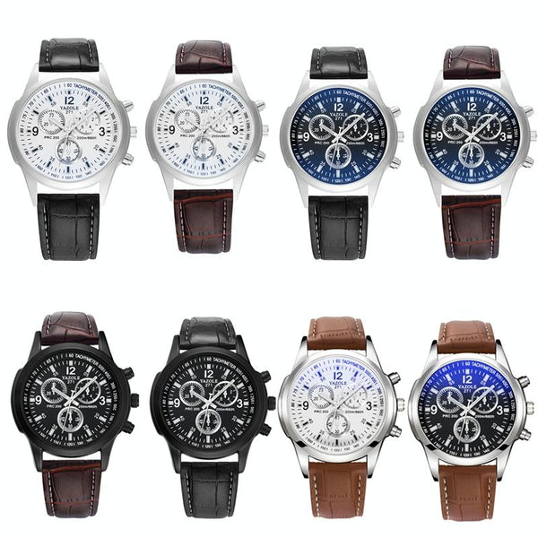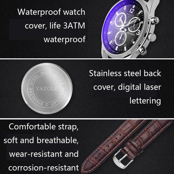 YAZOLE 271 Three-Eye Six-Hand Watch Men Auartz Watch Waterproof Business Watch(Black Shell Brown Belt)