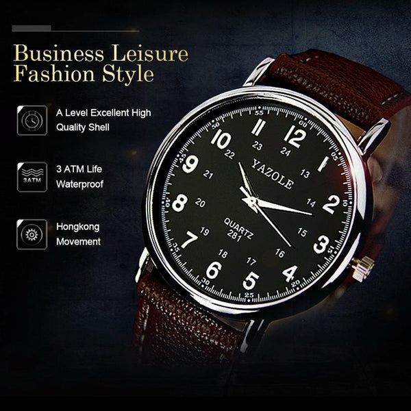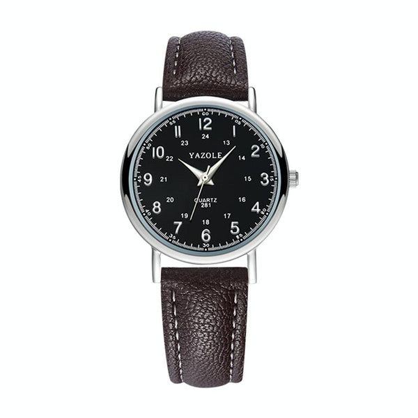 YAZOLE 281 Dual Digital Dial Simple Retro Business Couple Quartz Watch(Small Black Tray Brown Belt)