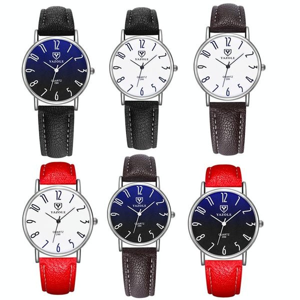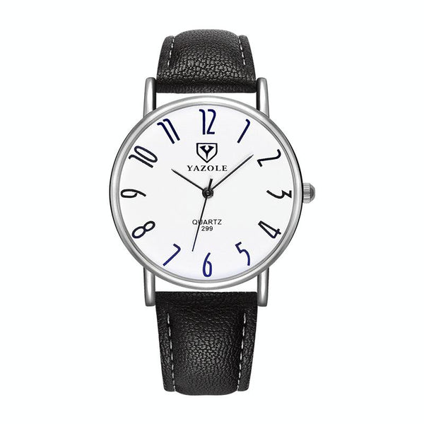 YAZOLE 299 Arabic Numerals Dial Couple Business Belt Watch(Large White Tray Black Belt)