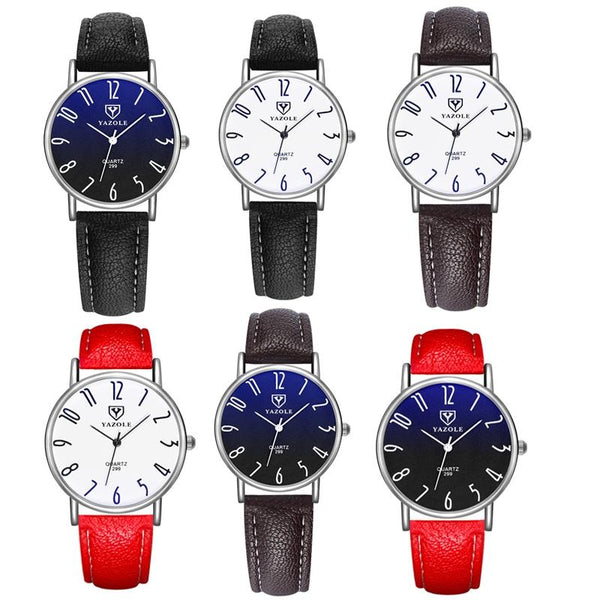 YAZOLE 299 Arabic Numerals Dial Couple Business Belt Watch(Small Black Tray Black Belt)