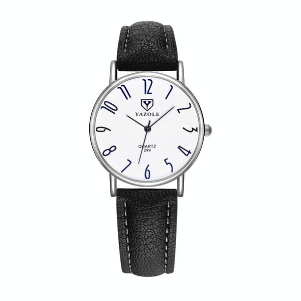 YAZOLE 299 Arabic Numerals Dial Couple Business Belt Watch(Small White Tray Black Belt)