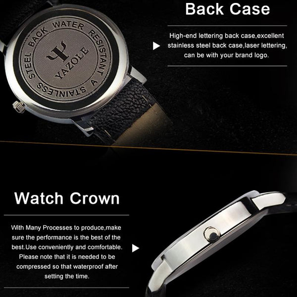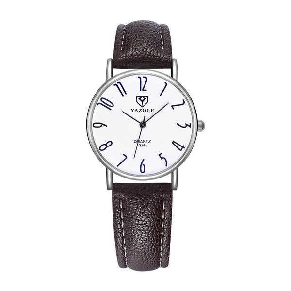 YAZOLE 299 Arabic Numerals Dial Couple Business Belt Watch(Small White Tray Brown Belt)
