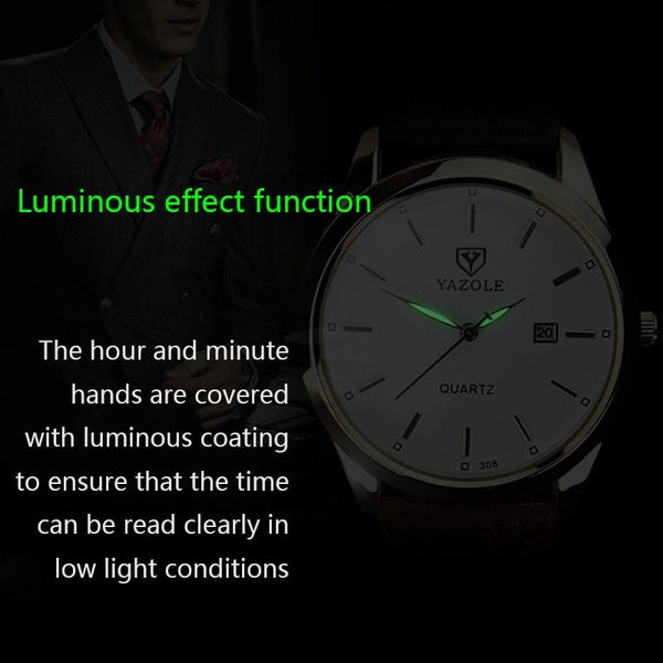 YAZOLE 308 Luminous Quartz Watch Men Watch(Black Tray Black Belt)