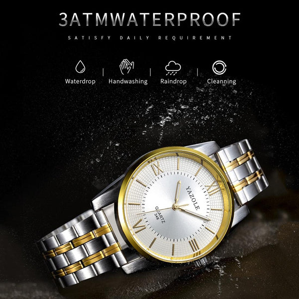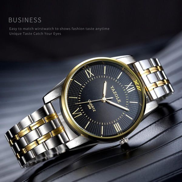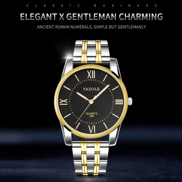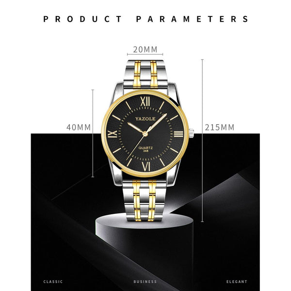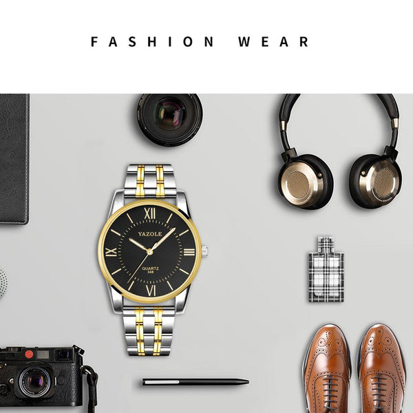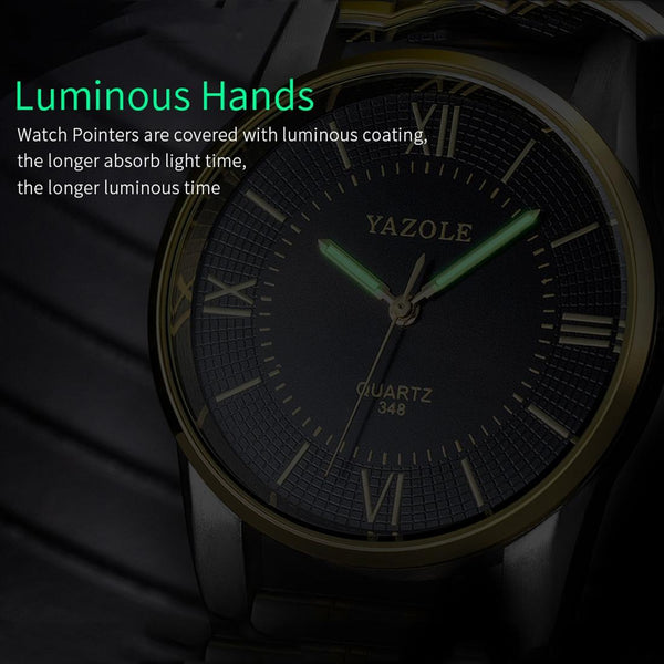 YAZOLE 348 Men Fashion Business Steel Strap Band Quartz Wrist Watch, Luminous Points (Black)