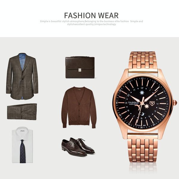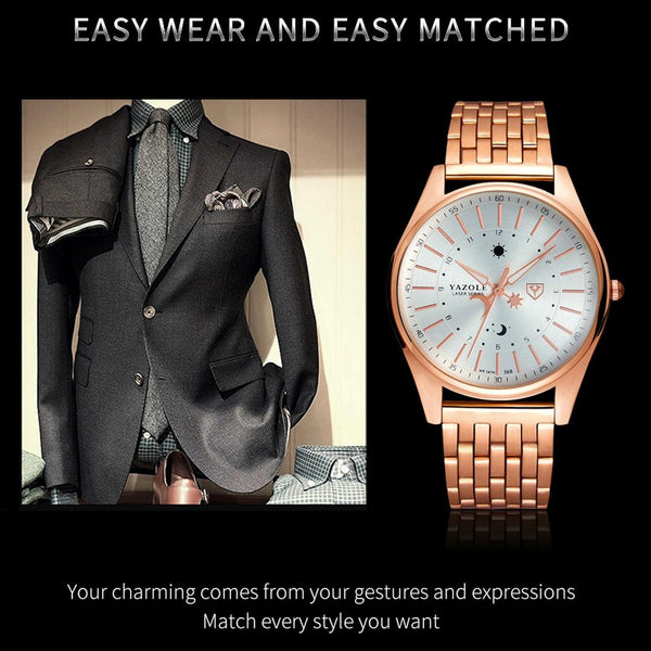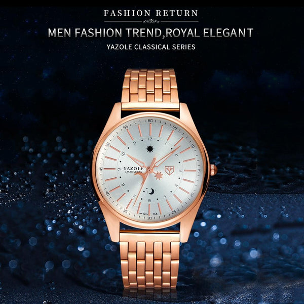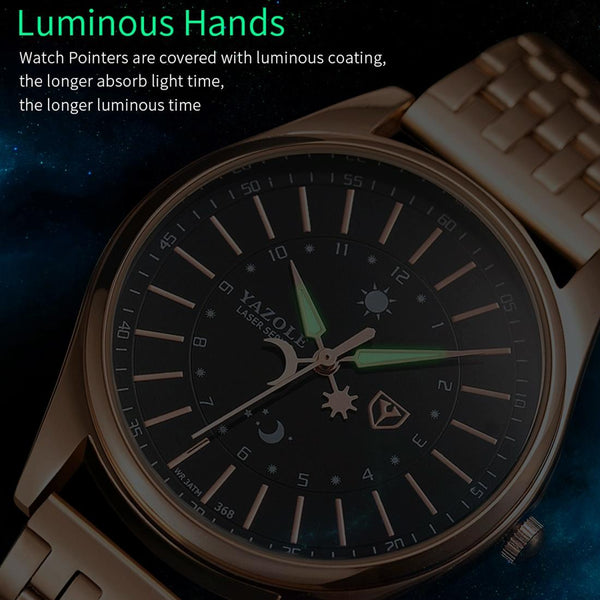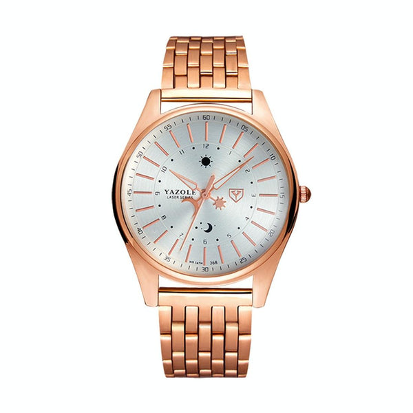 YAZOLE 368 Men Fashion Business Steel Strap Band Quartz Wrist Watch, Luminous Points(White)