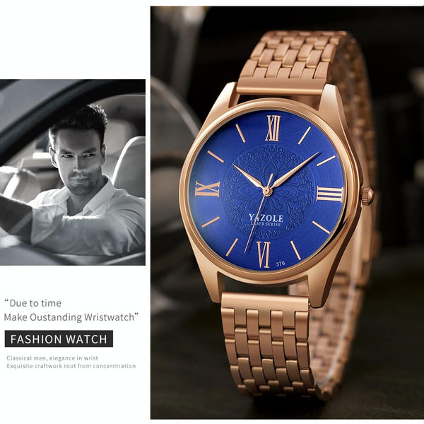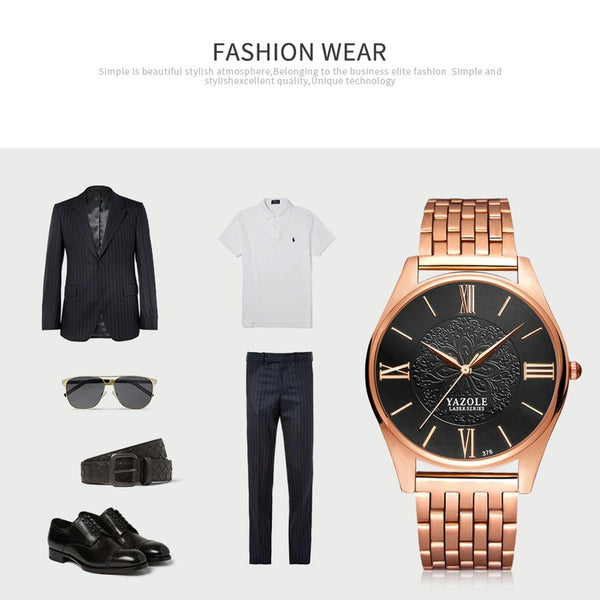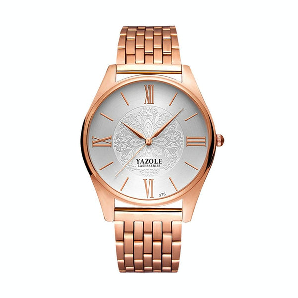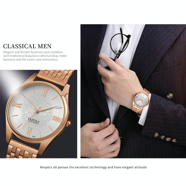 YAZOLE 376 Men Fashion Business Steel Strap Band Quartz Wrist Watch (White)
