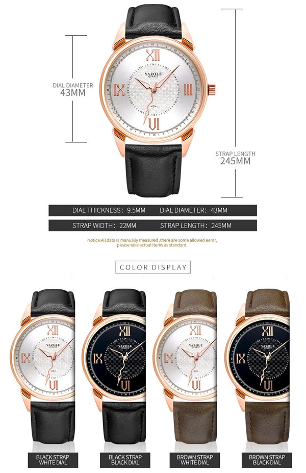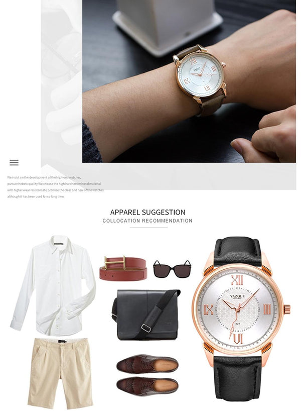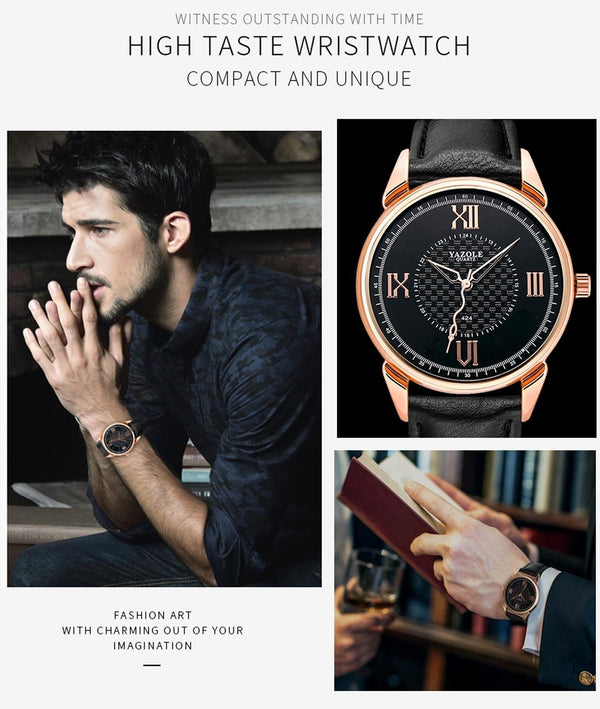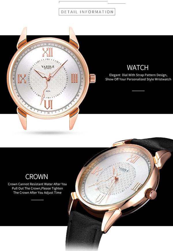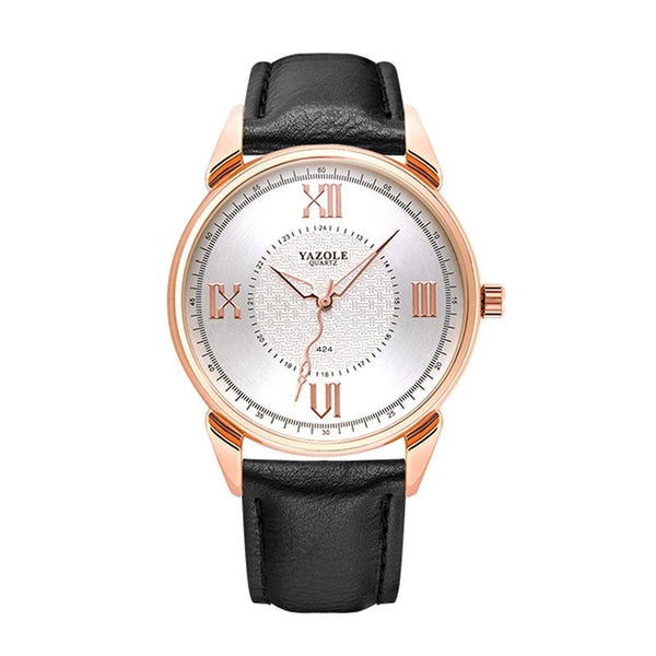 YAZOLE 424 Men Fashion Business PU Leather Band Quartz Wrist Watch, Luminous Points (White Dial + Black Strap)