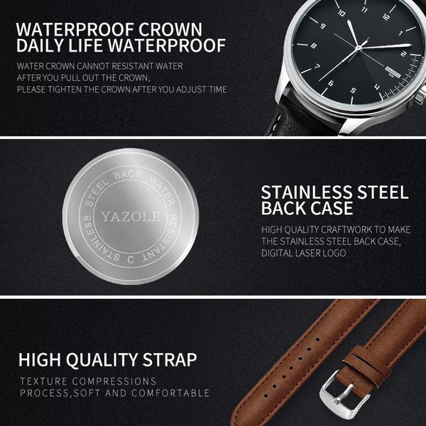 YAZOLE 502 Arabic Numerals Men Business Watch Fashion Quartz Watch(Silver Shell White Tray Brown Belt)