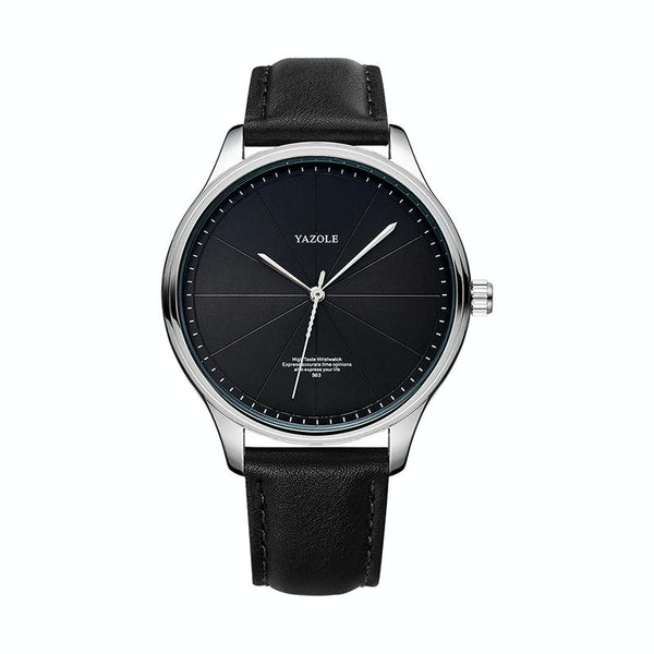 YAZOLE 503 Simple Line Pattern Dial Men Quartz Watch(Silver Shell Black Tray Black Belt)