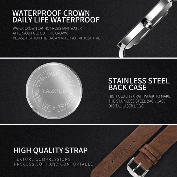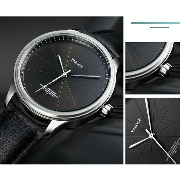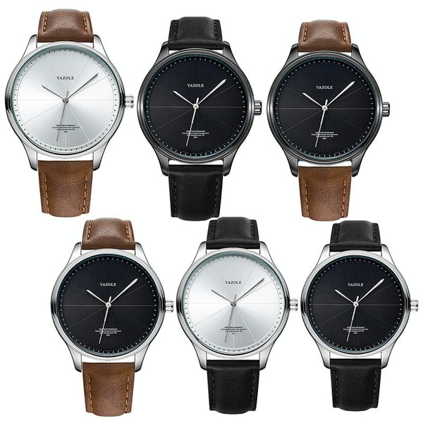 YAZOLE 503 Simple Line Pattern Dial Men Quartz Watch(Silver Shell Black Tray Brown Belt)
