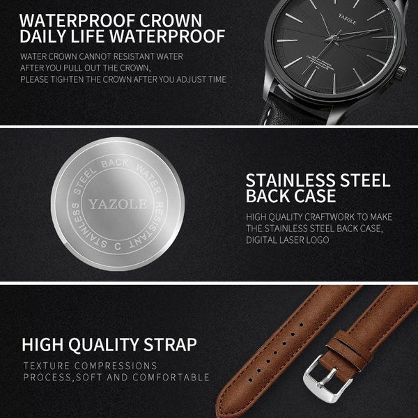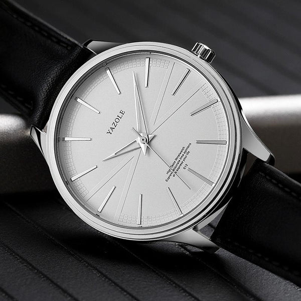 YAZOLE 512 Casual Quartz Men Watch(Silver Shell Black Tray Brown Belt)
