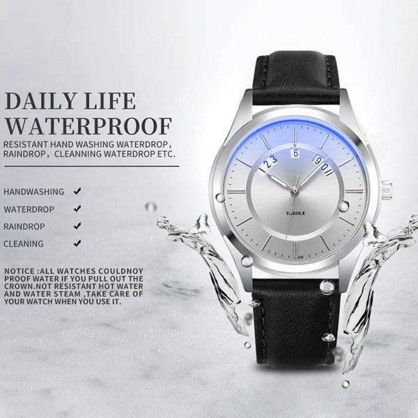 YAZOLE 513 Leather Band Calendar Waterproof Quartz Watch(Blue+Brown)